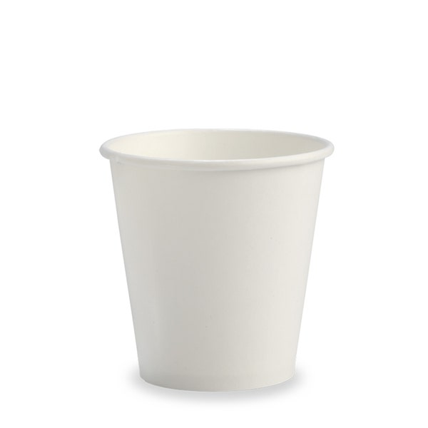 Paper BioCups are lined with a unique Aqueous dispersion coating. BioPak white paper cups are certified home and industrially compostable (AS5810 & AS4736). This 4oz white cup fits BioPak small lids.