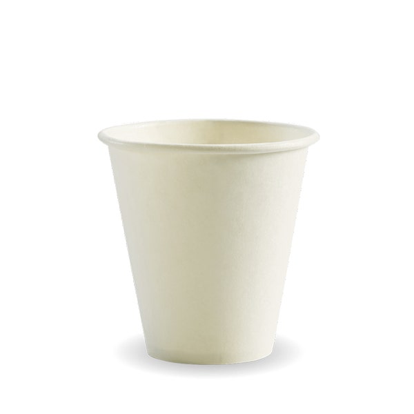 Paper BioCups are lined with a unique Aqueous dispersion coating. BioPak white paper cups are certified home and industrially compostable (AS5810 & AS4736). This 6oz white cup fits BioPak small lids.