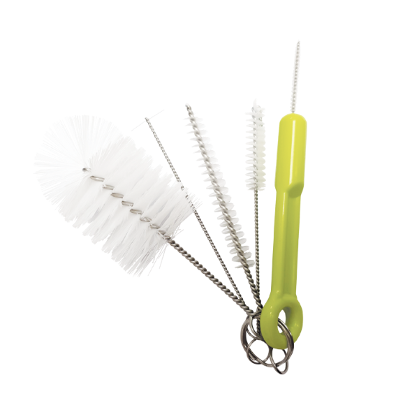 Description: Clean blocked milk delivery lines with a suitable sized brush from the set.